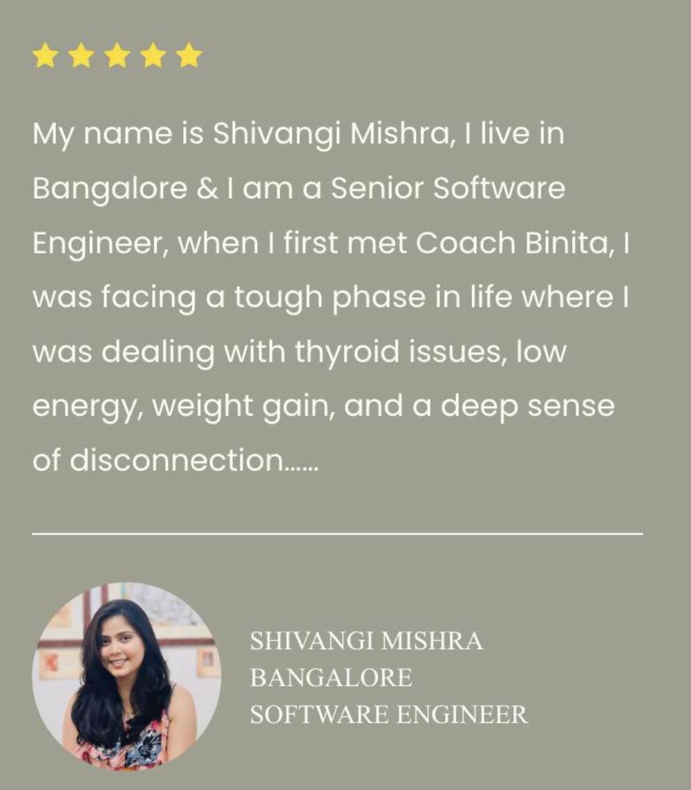 Today, Binita works with clients across the globe, guiding them toward mental clarity, emotional balance, and purposeful living. Her sessions are known for their warmth and simplicity, creating safe spaces for people to pause, reflect, and reconnect with their true selves.