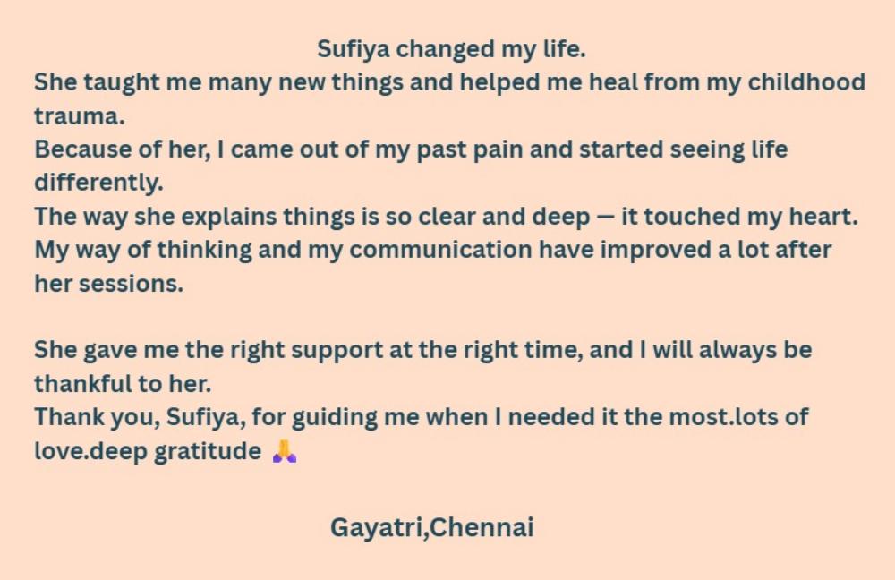 Driven by this purpose, Sufiya pursued professional certification and became an ISO-certified parenting coach. For the past two years, she has been dedicated to guiding mothers through some of their most challenging phases, with a special focus on teenage parenting—a stage filled with emotional complexities and evolving dynamics.