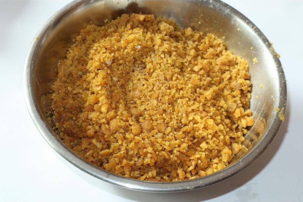- Step 3: In a non-stick pan, add the mashed dal and jaggery. Cook this mixture on low heat, stirring constantly to avoid sticking. The jaggery will melt and mix with the dal.