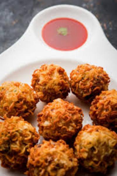 VII. Maggi bhajiya or Maggi fritters are ready. Serve hot with ketchup.