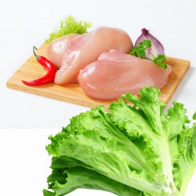 - In a large bowl, combine the chopped romaine lettuce and sliced grilled chicken breast.