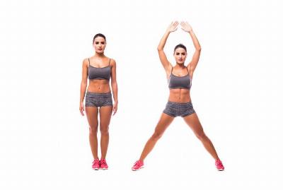 - f) Jumping Jacks (1 minute): Stand with feet together and arms by your sides. Jump, spreading your legs wider than hip-width apart while raising your arms overhead. Jump back to the starting position.