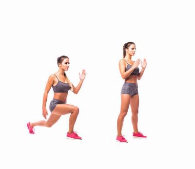 - c) Lunges (1 minute each leg): Stand with feet hip-width apart. Take a step forward with your right foot and lower your body until your right thigh is parallel to the ground, with your knee directly above your ankle. Push back up and repeat on the other side.